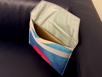 Upcyklovaný designový obal na notebook z roztančeného banneru k letošnímu festivalu španělských filmů La Película nebo ze zářivě neonového banneru k 20. narozeninám kina Světozor. Každý kus je originál díky Ruksak.